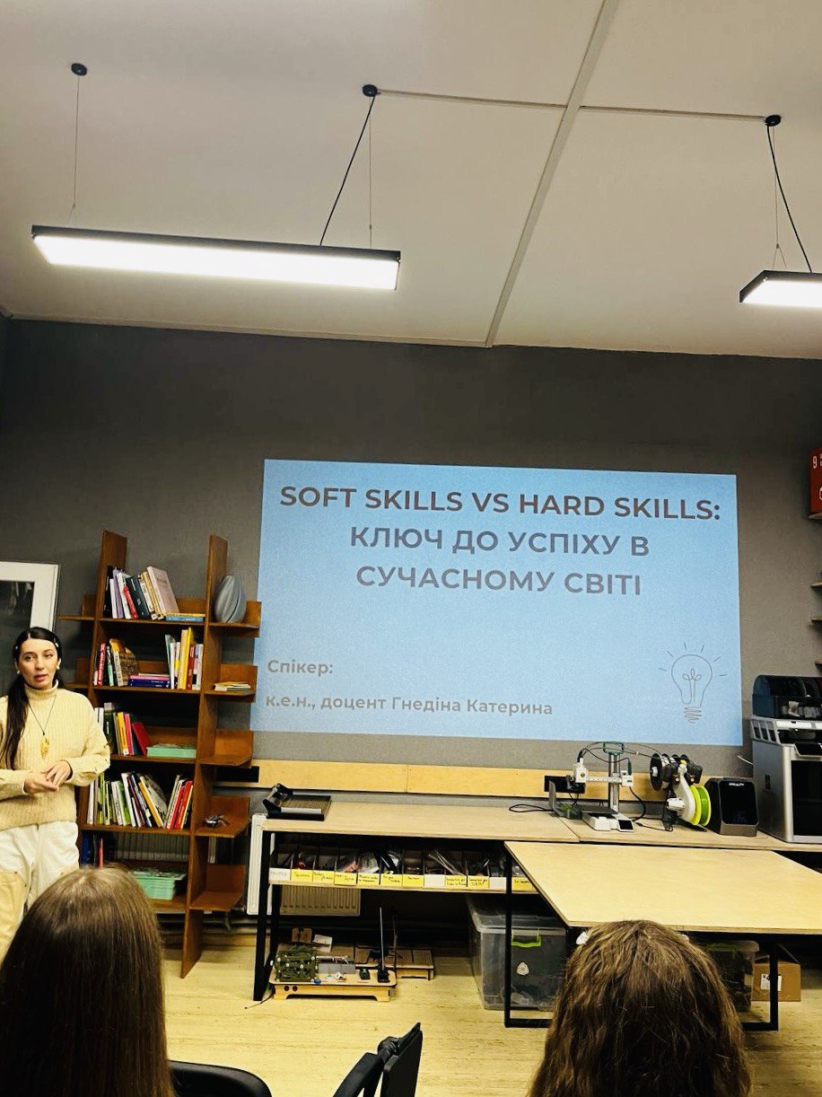 Спікером заходу виступила к.е.н., доцент кафедри економіки обліку і оподаткування Гнедіна Катерина Володимирівна. В рамках ДемКлубу учасники обговорили, як змінюється розуміння успіху у сучасному світі та які навички є найбільш затребуваними. Спікер заходу Гнедіна К.В. поділилися власним баченням того, як важливо поєднувати «м’які» та «тверді» навички, адже саме баланс між ними відкриває двері до професійного та особистісного розвитку, а також розповіла про погляди футурологів щодо важливих soft-skills, які будуть затребувані роботодавцями в майбутньому.