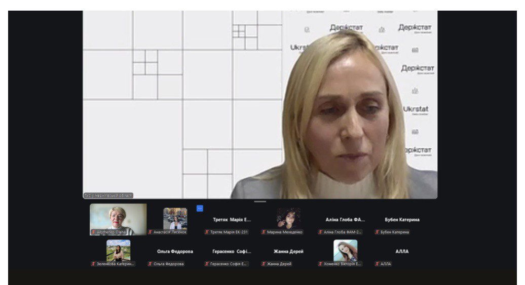 Гостьову лекцію провела Олена Радченко, начальник відділу планування, поширення інформації та комунікації Головного управління статистики у Чернігівській області.