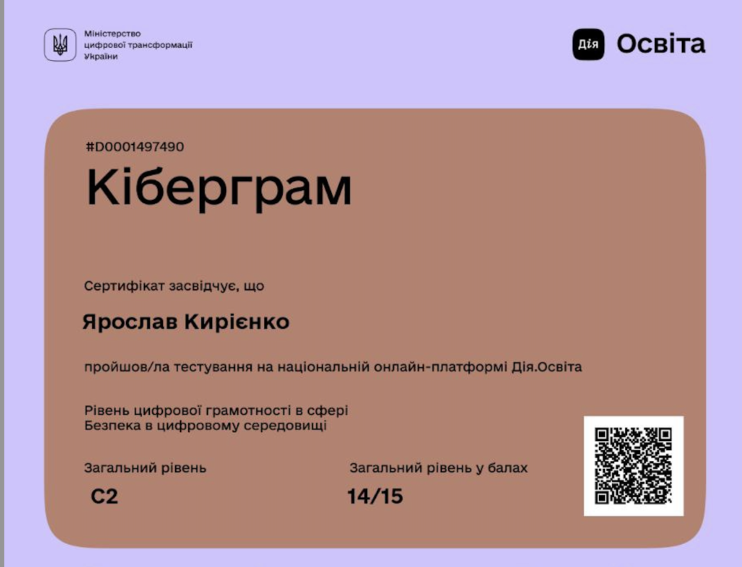 В рамках ініціативи Кирієнко Ярослав перевірив рівень своєї цифрової грамотності.