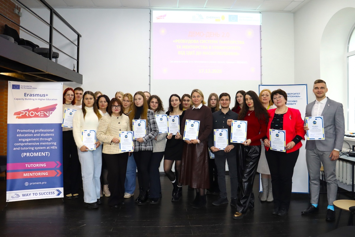 17 грудня 2025 року в НУ «Чернігівська політехніка» відбувся Демо-день 2.0 на тему «Розбудова системи тьюторства та менторства в університеті: від ідеї до масштабування» в межах проєкту Erasmus+ PROMENT.
