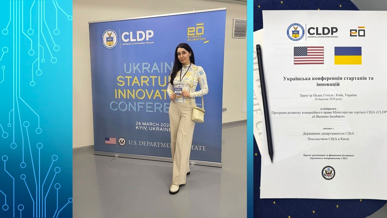 26 березня 2026 року доцент кафедри економіки, обліку і оподаткування, к.е.н. Гнедіна Катерина Володимирівна разом з командою стартапу «Інсулін без черг» взяла участь в Українській конференції стартапів та інновацій (м. Київ). Захід було проведено за підтримки Програми розвитку комерційного права Міністерства торгівлі США (CLDP) та eō Business Incubators, спільно з Державним департаментом США та Посольством США в Україні.