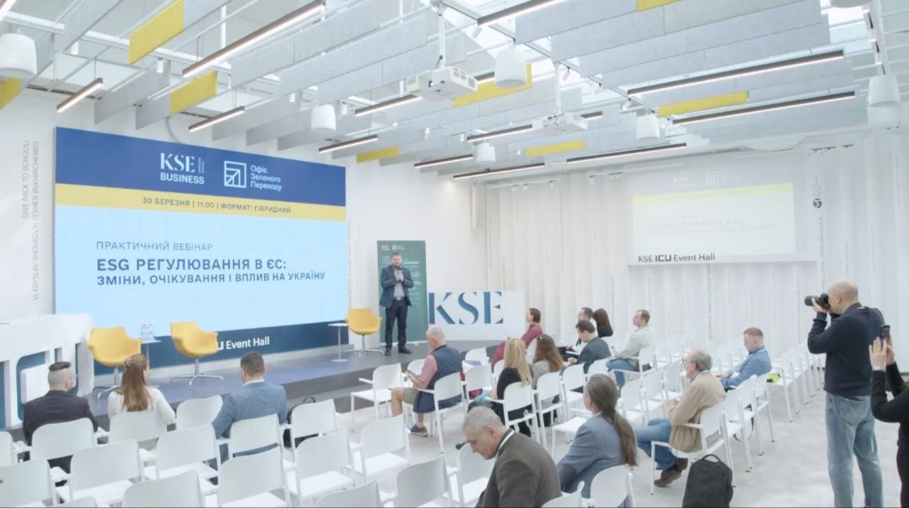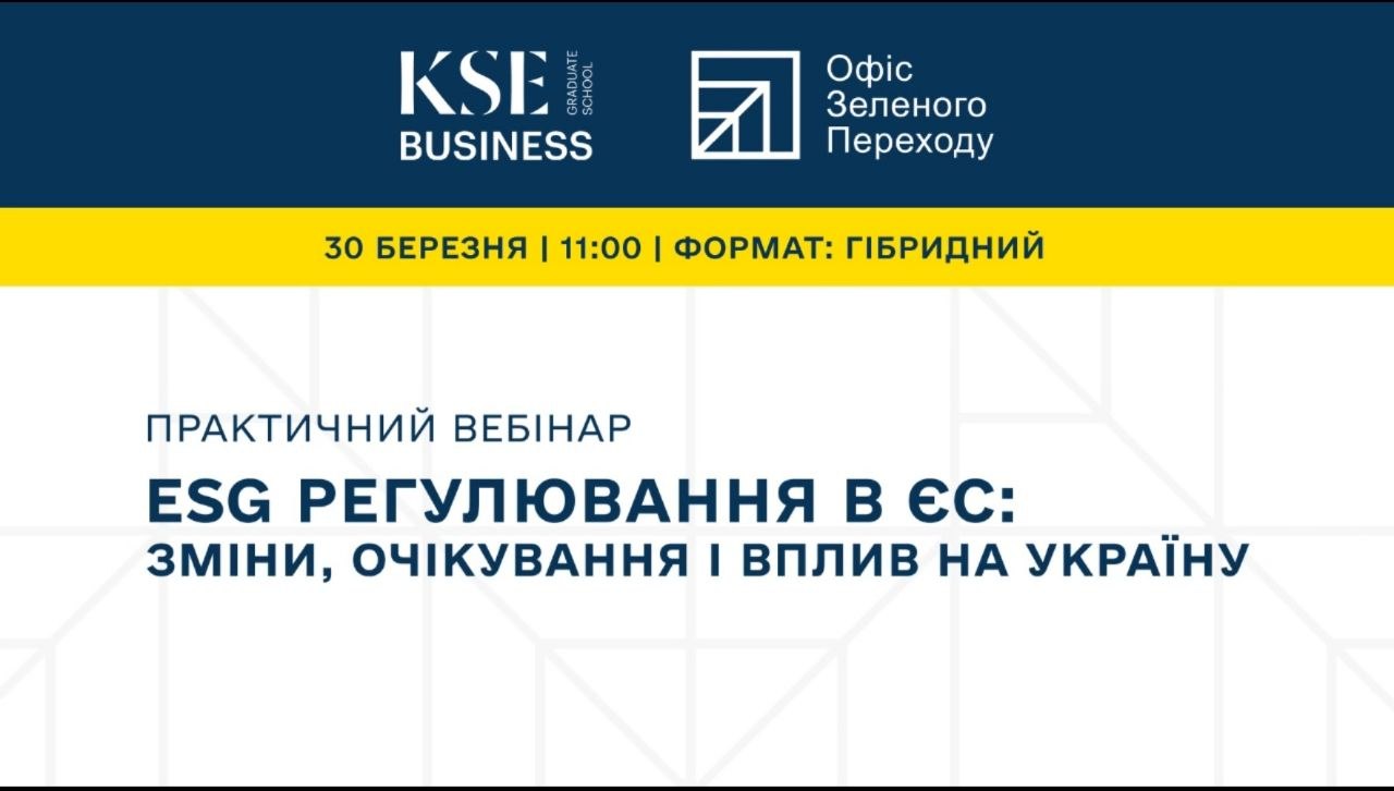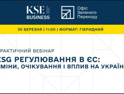 30 березня 2026 р. доцент кафедри економіки, обліку і оподаткування, к.е.н. Гнедіна Катерина Володимирівна долучилася до участі у практичному вебінарі «ESG регулювання в ЄС: зміни, очікування і вплив на Україну», організованого Офісом зеленого переходу спільно з KSE Business School.